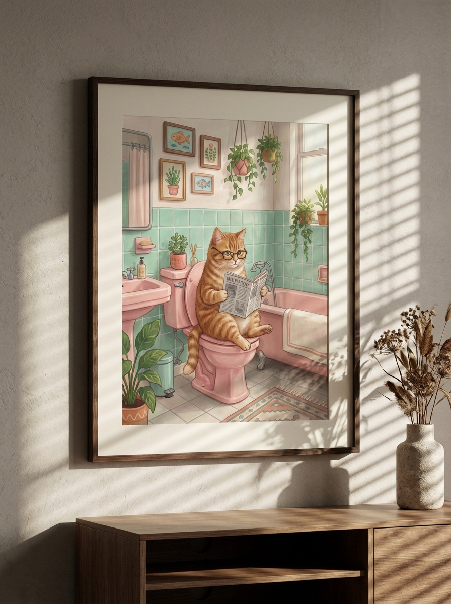 Sanat eserini doğru yerleştirmek onu doğru seçmek kadar önemlidir. Charming Ginger Cat Duvar Sanatı - Pembe Background doğal ışık alan banyolarda özellikle çarpıcı görünür. Pencereden düşen ışık renklerin canlılığını artırır ve Charming Ginger Cat Duvar Sanatı - Pembe Background eserine üç boyutlu bir derinlik hissi katar. Banyonuzda doğal ışık yoksa renk sıcaklığı 3000-4000K arasında bir LED aydınlatma tercih edin; bu baskı renklerine en doğal görünümü sunar.