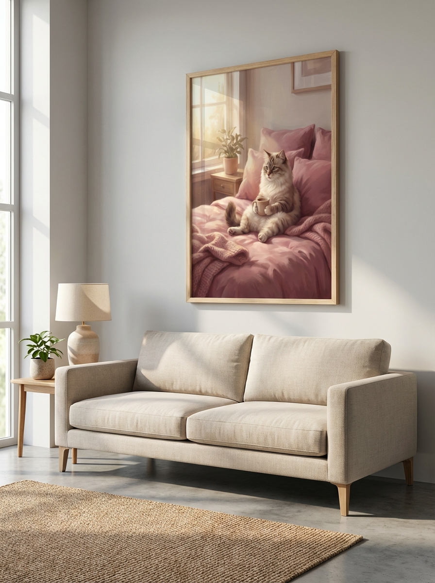 Tasarımı en iyi değerlendirebileceğiniz mekânlar için birkaç öneri sunalım. Çocuklar İçin Renkli: Cozy Fluffy Kedi Temalı Oda Tasarımı için tuvalet karşısındaki duvar en ideal konumdur; o alanda geçirilen birkaç dakika eseri en uzun süre deneyimleme imkanı sunar. Küvet üstü boşluklar ise banyonun en dramatik görüntü alanıdır ve Çocuklar İçin Renkli: Cozy Fluffy Kedi Temalı Oda Tasarımı doğru boyutta burada müthiş bir etki yaratır. Çerçeve tercihinizde banyonun mevcut metal aksesuarlarıyla uyum sağlamayı hedefleyin.