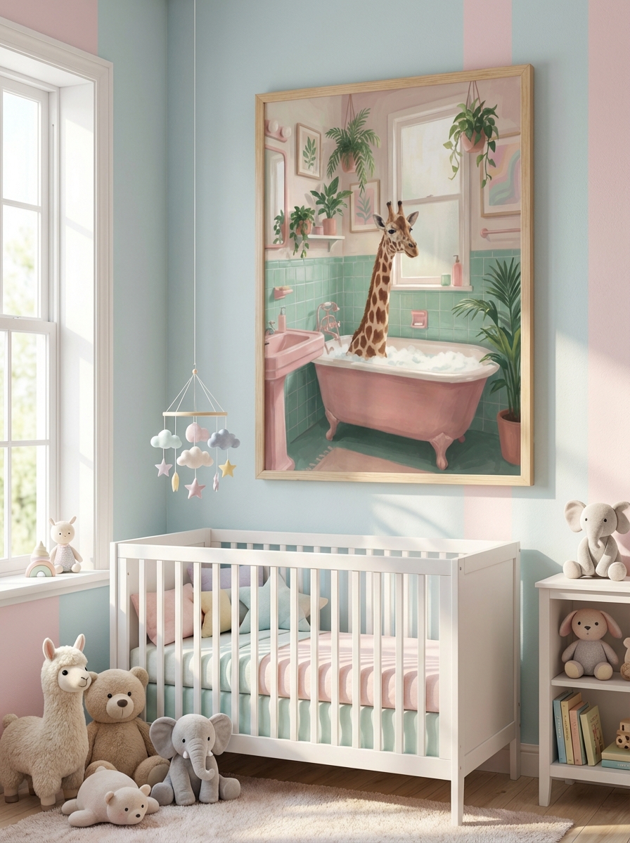 Benzersiz bir estetik anlayışın ürünü olarak PembeDuvar koleksiyonunda hak ettiği yeri aldı. Cute Giraffe in Bath Print - Nursery Dekorasyonu tasarımının arka planında uzun bir araştırma süreci yatmaktadır. Renk uyumları, baskı teknolojisinin sınırları ve hedef mekanın atmosferi göz önünde bulundurularak her detay özenle yerleştirildi. Dosyalar 300 DPI baskı standardında hazırlandı; A0 boyutuna kadar keskin ve detaylı baskı almanızı garanti eder. Satın aldıktan hemen sonra Cute Giraffe in Bath Print - Nursery Dekorasyonu dijital dosyalarınızı indirip 81 ildeki baskı merkezlerinde işleme sokabilirsiniz. Kanvas tablo, fotoğraf kağıdı, cam baskı veya kuşe poster gibi farklı materyal seçenekleri arasından banyonuzun havasına en uygun olanı tercih edebilirsiniz.