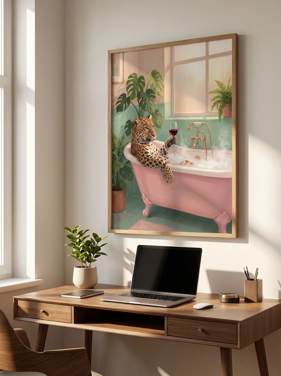 Bu eseri bugüne kadar satın alan müşterilerimizin paylaşımlarında dikkat çekici bir ortak nokta var. Eğlenceli Leopar ve Pembe Küvet Duvar Sanatı yalnızca kişisel kullanım için değil hediye olarak da tercih ediliyor. Eğlenceli Leopar ve Pembe Küvet Duvar Sanatı dijital format sayesinde anında teslim edilebilir, iade derdi yoktur ve alıcı kendi boyutunu seçme özgürlüğü elde eder.