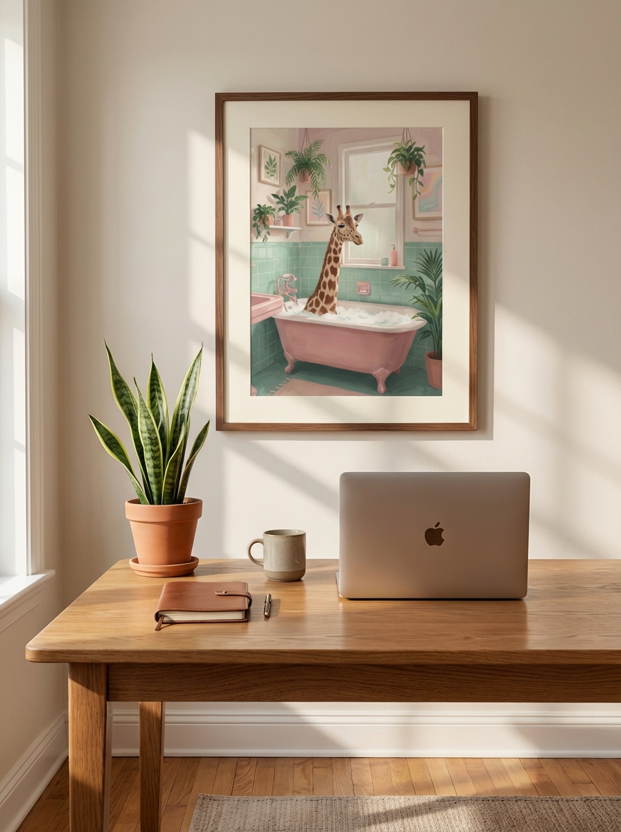 Benzersiz bir estetik anlayışın ürünü olarak PembeDuvar koleksiyonunda hak ettiği yeri aldı. Etkileyici Küvette Zürafa Poster - Modern Ev Dekoru tasarımının arka planında uzun bir araştırma süreci yatmaktadır. Renk uyumları, baskı teknolojisinin sınırları ve hedef mekanın atmosferi göz önünde bulundurularak her detay özenle yerleştirildi. Dosyalar 300 DPI baskı standardında hazırlandı; A0 boyutuna kadar keskin ve detaylı baskı almanızı garanti eder. Satın aldıktan hemen sonra Etkileyici Küvette Zürafa Poster - Modern Ev Dekoru dijital dosyalarınızı indirip 81 ildeki baskı merkezlerinde işleme sokabilirsiniz. Kanvas tablo, fotoğraf kağıdı, cam baskı veya kuşe poster gibi farklı materyal seçenekleri arasından banyonuzun havasına en uygun olanı tercih edebilirsiniz.