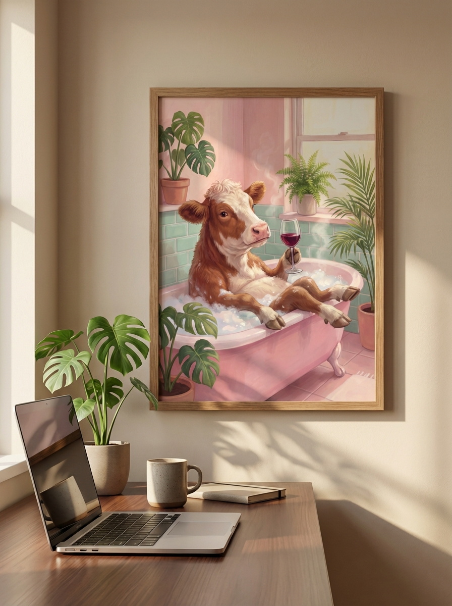 Fantastik İnek Küvet Sanat Baskısı - Çocuklar İçin