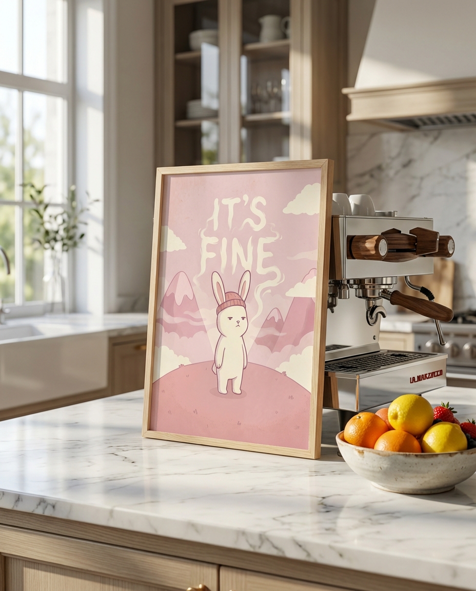 Sanat eserini doğru yerleştirmek onu doğru seçmek kadar önemlidir. Grumpy Bunny - İlginç ve Eğlenceli Tasarım doğal ışık alan banyolarda özellikle çarpıcı görünür. Pencereden düşen ışık renklerin canlılığını artırır ve Grumpy Bunny - İlginç ve Eğlenceli Tasarım eserine üç boyutlu bir derinlik hissi katar. Banyonuzda doğal ışık yoksa renk sıcaklığı 3000-4000K arasında bir LED aydınlatma tercih edin; bu baskı renklerine en doğal görünümü sunar.