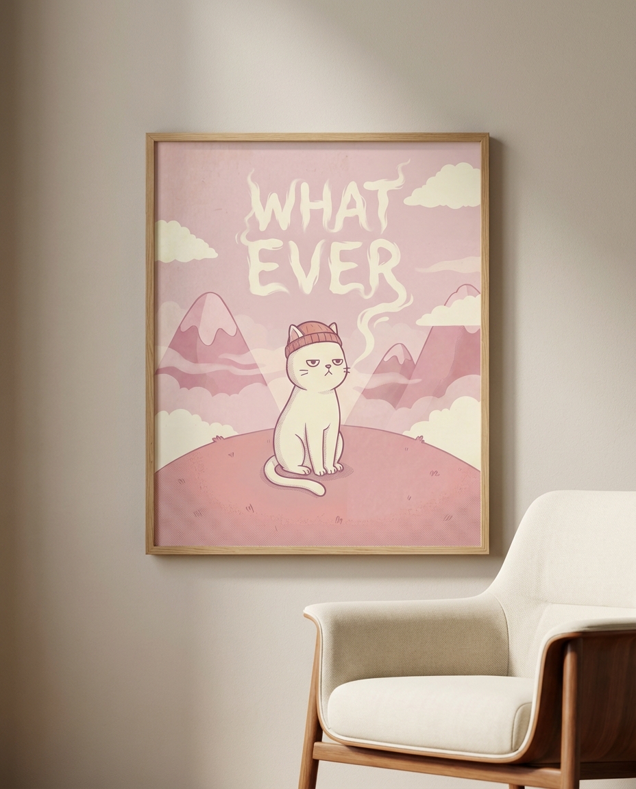 Banyo dekorasyonunda en sık yapılan hata tarzın tutarsızlığıdır. Grumpy Cat Whatever - Mutlaka Görmeniz Gereken Bir Baskı bu sorunu kökten çözüyor; minimalist, Skandinav ve modern Bohem tarzlarla mükemmel uyum sağlıyor. Siyah metal çerçeve seçerseniz Grumpy Cat Whatever - Mutlaka Görmeniz Gereken Bir Baskı mekana çağdaş bir karakter kazandırır; doğal ahşap çerçeve ise sıcak ve organik bir hava yaratır. Küçük banyolarda tek büyük eser çok daha güçlü bir etki bırakırken büyük banyolarda birkaç küçük eseri simetrik olarak dizmek galeri görünümü sunar.