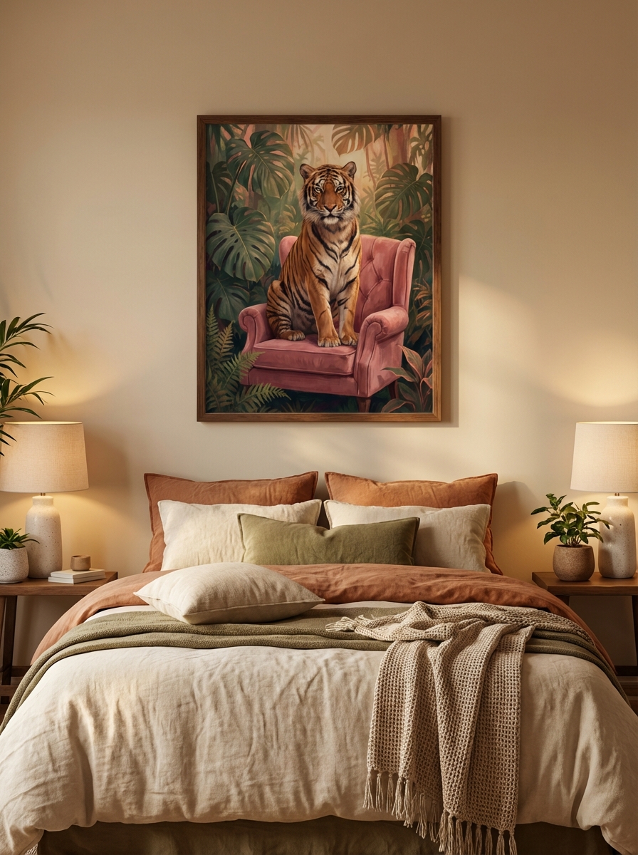 Iconic Tiger on Pembe Armchair - Trendy Wall Dekorasyonu