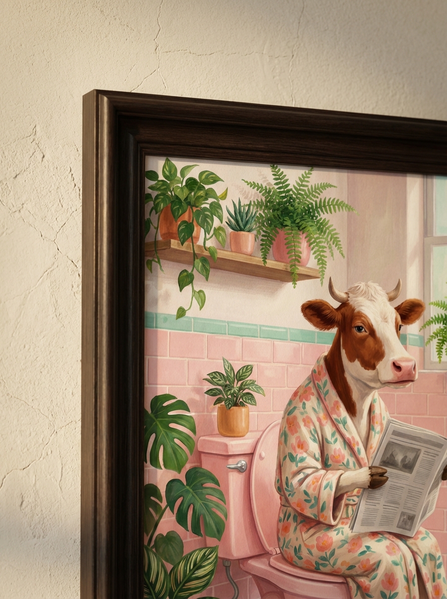 Benzersiz bir estetik anlayışın ürünü olarak PembeDuvar koleksiyonunda hak ettiği yeri aldı. İnek Tuvalette Sanat tasarımının arka planında uzun bir araştırma süreci yatmaktadır. Renk uyumları, baskı teknolojisinin sınırları ve hedef mekanın atmosferi göz önünde bulundurularak her detay özenle yerleştirildi. Dosyalar 300 DPI baskı standardında hazırlandı; A0 boyutuna kadar keskin ve detaylı baskı almanızı garanti eder. Satın aldıktan hemen sonra İnek Tuvalette Sanat dijital dosyalarınızı indirip 81 ildeki baskı merkezlerinde işleme sokabilirsiniz. Kanvas tablo, fotoğraf kağıdı, cam baskı veya kuşe poster gibi farklı materyal seçenekleri arasından banyonuzun havasına en uygun olanı tercih edebilirsiniz.