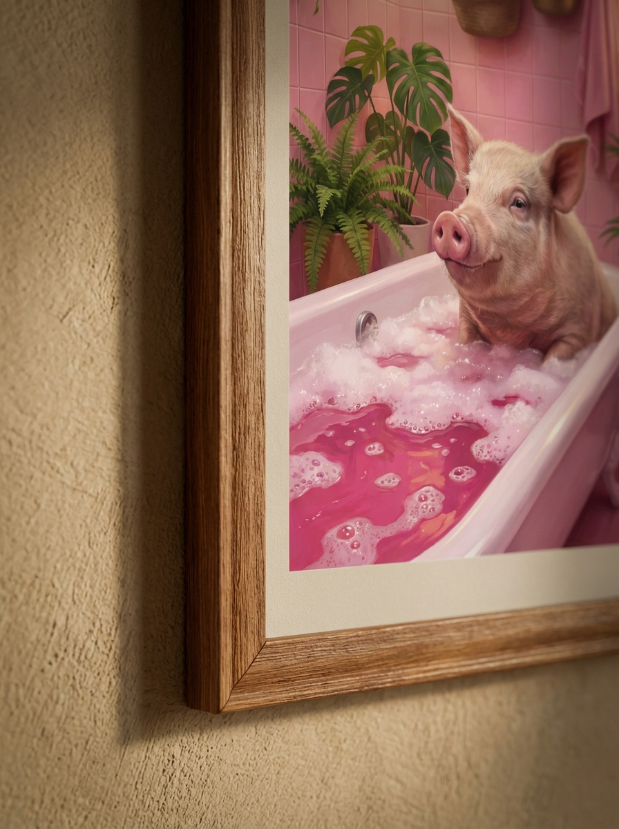 Banyo dekorasyonunda en sık yapılan hata tarzın tutarsızlığıdır. Japon Tarzında Sakin Domuz Temalı Banyo bu sorunu kökten çözüyor; minimalist, Skandinav ve modern Bohem tarzlarla mükemmel uyum sağlıyor. Siyah metal çerçeve seçerseniz Japon Tarzında Sakin Domuz Temalı Banyo mekana çağdaş bir karakter kazandırır; doğal ahşap çerçeve ise sıcak ve organik bir hava yaratır. Küçük banyolarda tek büyük eser çok daha güçlü bir etki bırakırken büyük banyolarda birkaç küçük eseri simetrik olarak dizmek galeri görünümü sunar.