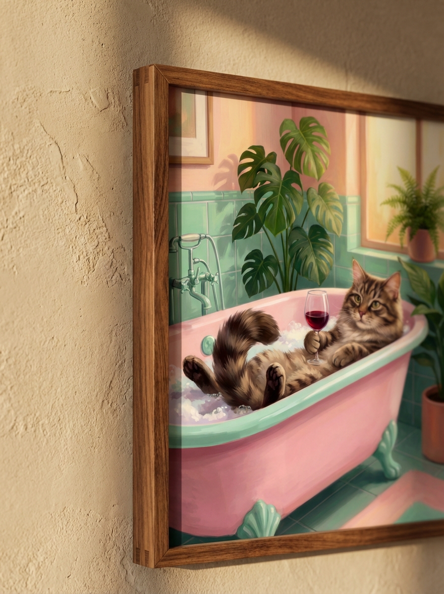 Banyo dekorasyonunda en sık yapılan hata tarzın tutarsızlığıdır. Kedi Temalı Gıda ve İçecek Köşesi için Eğlenceli Tablo bu sorunu kökten çözüyor; minimalist, Skandinav ve modern Bohem tarzlarla mükemmel uyum sağlıyor. Siyah metal çerçeve seçerseniz Kedi Temalı Gıda ve İçecek Köşesi için Eğlenceli Tablo mekana çağdaş bir karakter kazandırır; doğal ahşap çerçeve ise sıcak ve organik bir hava yaratır. Küçük banyolarda tek büyük eser çok daha güçlü bir etki bırakırken büyük banyolarda birkaç küçük eseri simetrik olarak dizmek galeri görünümü sunar.