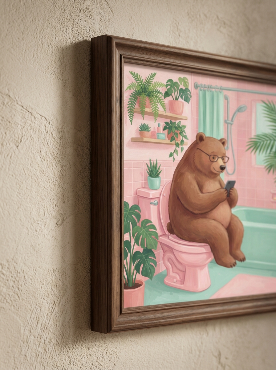 Sanat eserini doğru yerleştirmek onu doğru seçmek kadar önemlidir. Komik Ayı Tuvalet İllüstrasyonu doğal ışık alan banyolarda özellikle çarpıcı görünür. Pencereden düşen ışık renklerin canlılığını artırır ve Komik Ayı Tuvalet İllüstrasyonu eserine üç boyutlu bir derinlik hissi katar. Banyonuzda doğal ışık yoksa renk sıcaklığı 3000-4000K arasında bir LED aydınlatma tercih edin; bu baskı renklerine en doğal görünümü sunar.