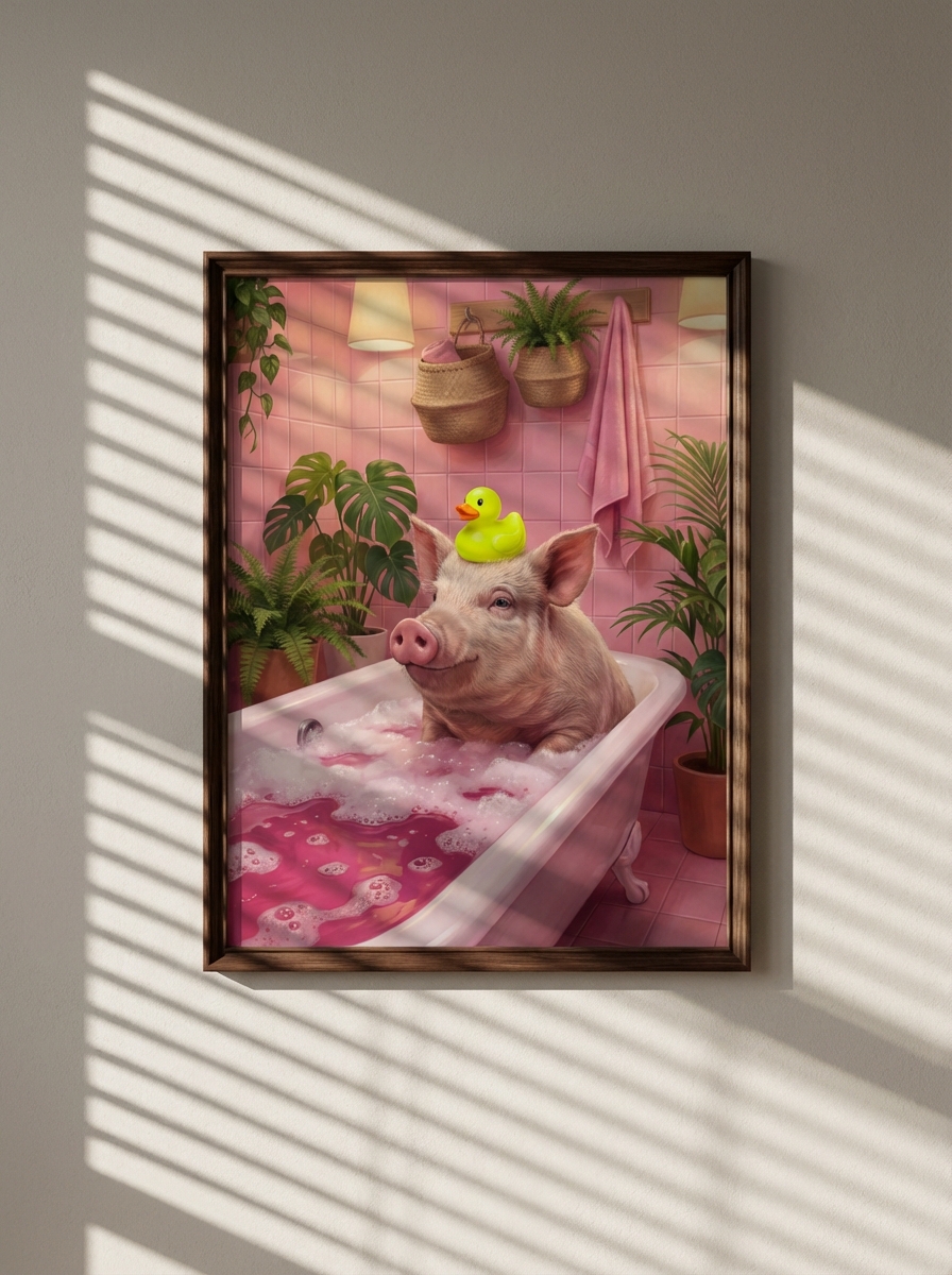 Banyo dekorasyonunda en sık yapılan hata tarzın tutarsızlığıdır. Küvet İçindeki Domuz Sanatı - Evinize Neşe Katın bu sorunu kökten çözüyor; minimalist, Skandinav ve modern Bohem tarzlarla mükemmel uyum sağlıyor. Siyah metal çerçeve seçerseniz Küvet İçindeki Domuz Sanatı - Evinize Neşe Katın mekana çağdaş bir karakter kazandırır; doğal ahşap çerçeve ise sıcak ve organik bir hava yaratır. Küçük banyolarda tek büyük eser çok daha güçlü bir etki bırakırken büyük banyolarda birkaç küçük eseri simetrik olarak dizmek galeri görünümü sunar.