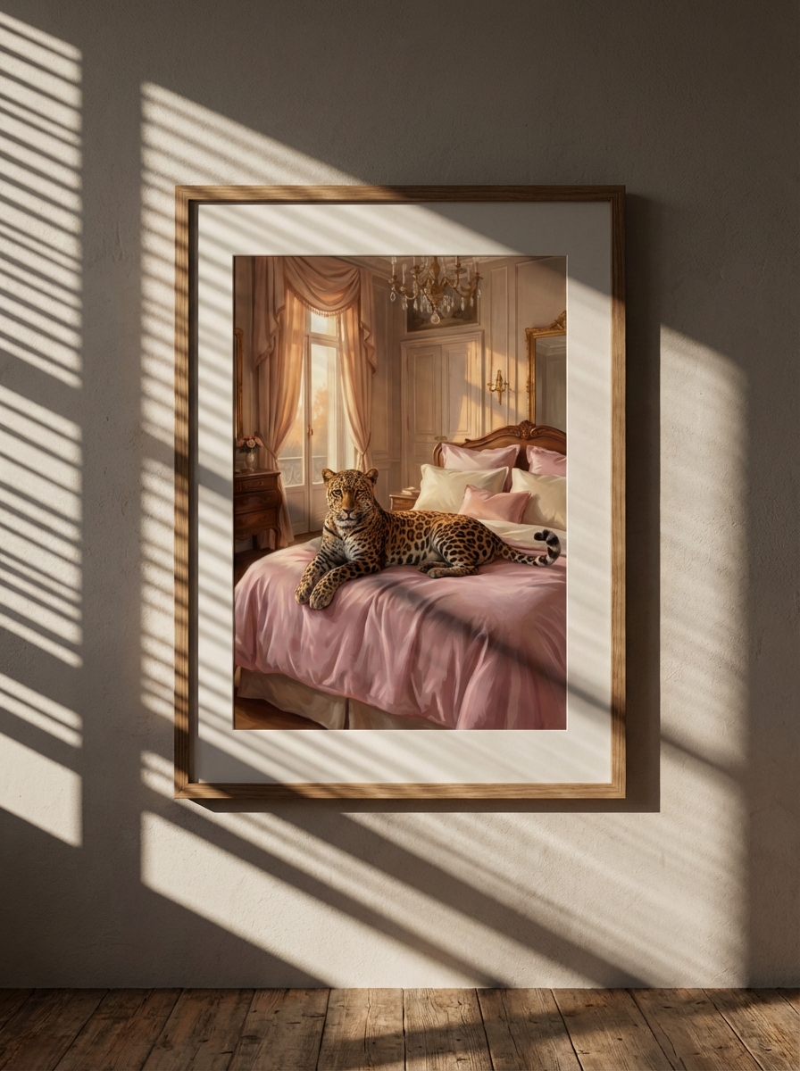 Leopard on Bed Duvar Sanatı - Elegant Home Dekorasyonu