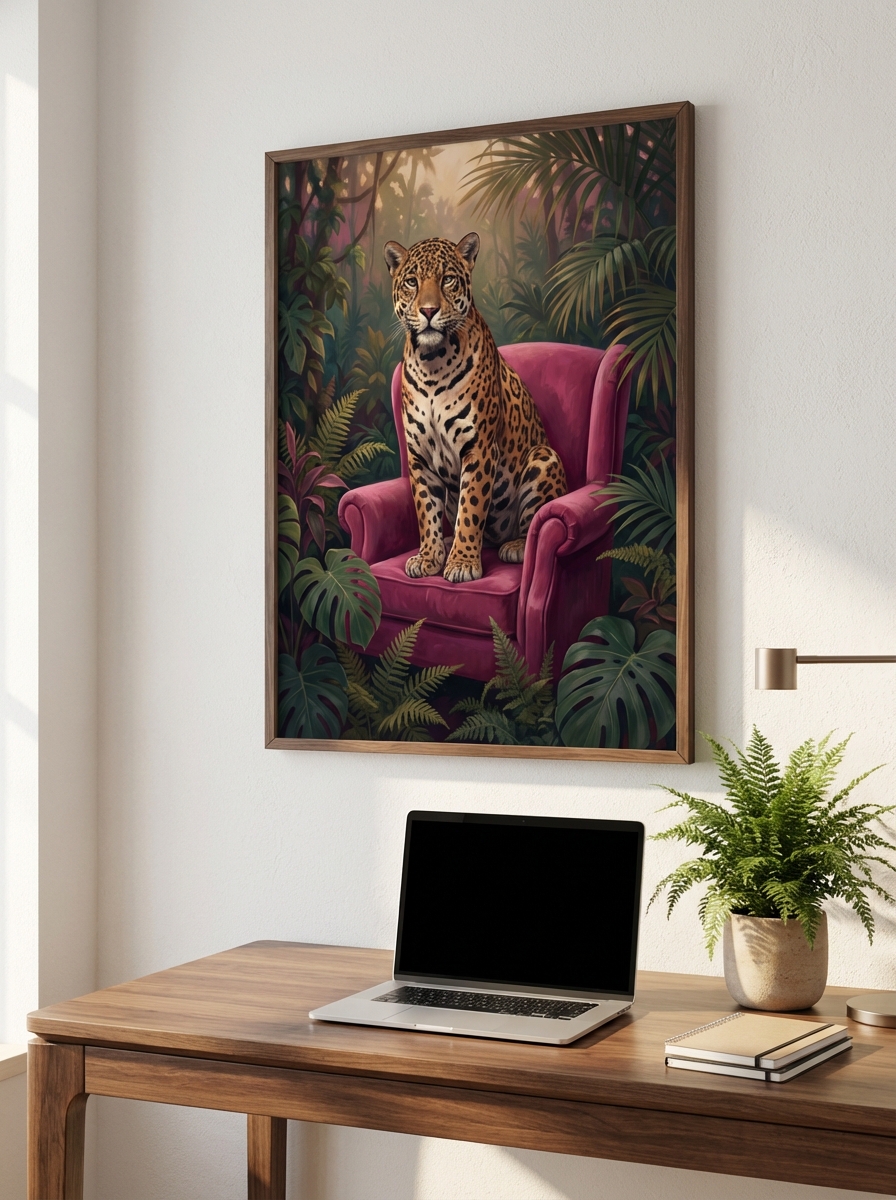 PembeDuvar, yalnızca bir dijital sanat mağazası değil; evlerinize anlam katan bir estetik hareketin parçası. Lüks Pembe Koltukta Jaguar Sanat Baskısı bu hareketin en güçlü temsilcilerinden biri. Türk tüketicinin beğenisini ve alışkanlıklarını yakından tanıyan tasarımcılar tarafından hazırlanan Lüks Pembe Koltukta Jaguar Sanat Baskısı, Türk evlerinin atmosferine uyum sağlayan renk ve kompozisyon anlayışıyla kurgulanıyor.