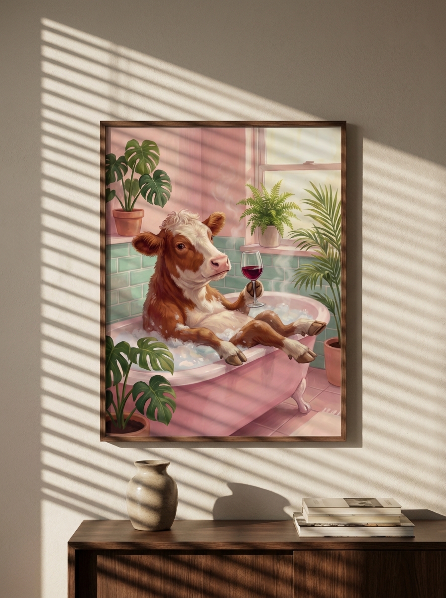 Banyo dekorasyonunda en sık yapılan hata tarzın tutarsızlığıdır. Minimalist Sokak Sanatı: Banyo için Sade İnek Tablo bu sorunu kökten çözüyor; minimalist, Skandinav ve modern Bohem tarzlarla mükemmel uyum sağlıyor. Siyah metal çerçeve seçerseniz Minimalist Sokak Sanatı: Banyo için Sade İnek Tablo mekana çağdaş bir karakter kazandırır; doğal ahşap çerçeve ise sıcak ve organik bir hava yaratır. Küçük banyolarda tek büyük eser çok daha güçlü bir etki bırakırken büyük banyolarda birkaç küçük eseri simetrik olarak dizmek galeri görünümü sunar.