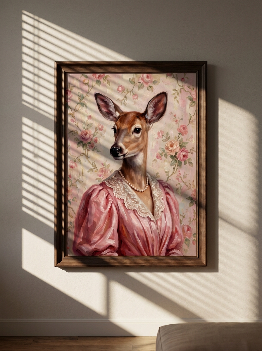 Mükemmel Pembe Elbiseli Geyik Duvar Sanatı