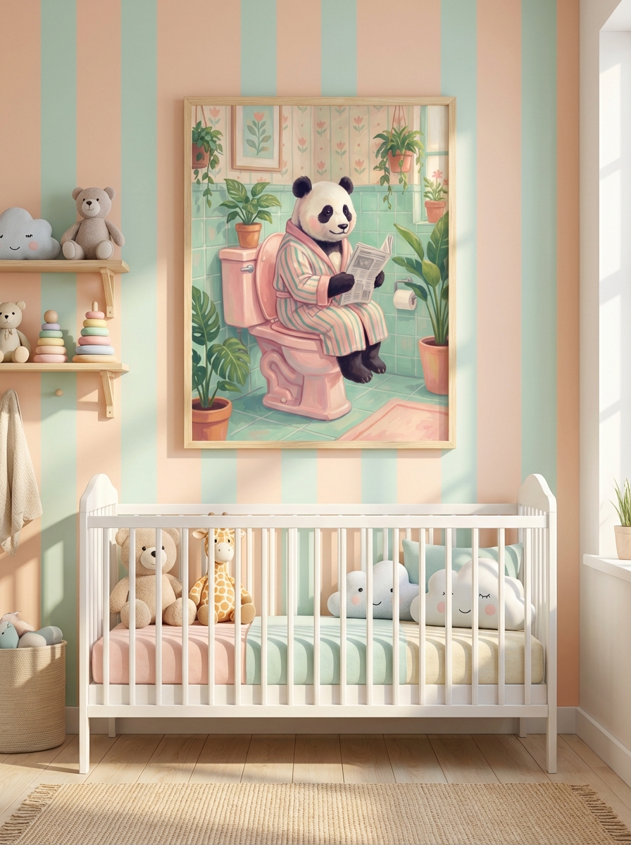 Panda on Pembe Tuvalet Duvar Sanatı - A Unique Gift Idea