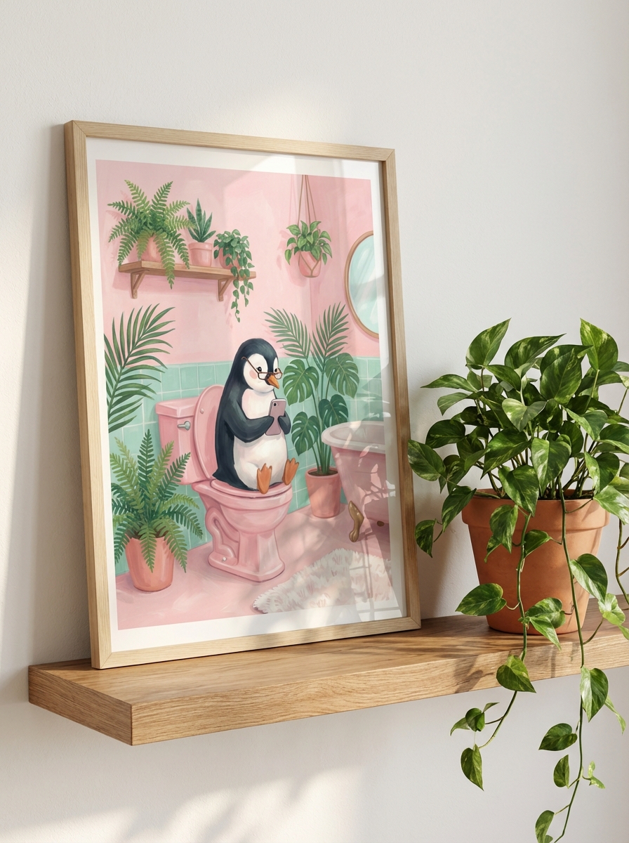 Banyo dekorasyonunda en sık yapılan hata tarzın tutarsızlığıdır. Pembe Arka Plan Üzerinde Penguen Sanatı - Eğlenceli Banyo Baskıları bu sorunu kökten çözüyor; minimalist, Skandinav ve modern Bohem tarzlarla mükemmel uyum sağlıyor. Siyah metal çerçeve seçerseniz Pembe Arka Plan Üzerinde Penguen Sanatı - Eğlenceli Banyo Baskıları mekana çağdaş bir karakter kazandırır; doğal ahşap çerçeve ise sıcak ve organik bir hava yaratır. Küçük banyolarda tek büyük eser çok daha güçlü bir etki bırakırken büyük banyolarda birkaç küçük eseri simetrik olarak dizmek galeri görünümü sunar.