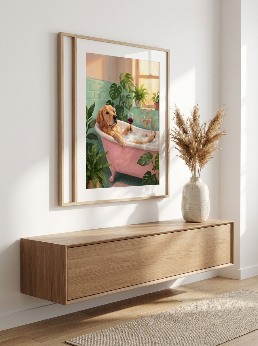 Bu tasarımın evinizde en parlak biçimde parlaması için pratik ipuçları paylaşalım. Rustik Golden Retriever Duvar Tasarımlarıyla Doğal Zarafet için öncelikle banyonuzun hakim renk tonunu belirleyin. Küçük banyolarda Rustik Golden Retriever Duvar Tasarımlarıyla Doğal Zarafet için A3 boyut idealdir; hem dekoratif etki yaratır hem de mekânı bunaltmaz. Büyük banyolarda ise A1 ya da daha büyük bir kanvas seçmekten çekinmeyin; büyük yüzeyler bu tür tasarımların güçlü tarafını ön plana çıkarır.