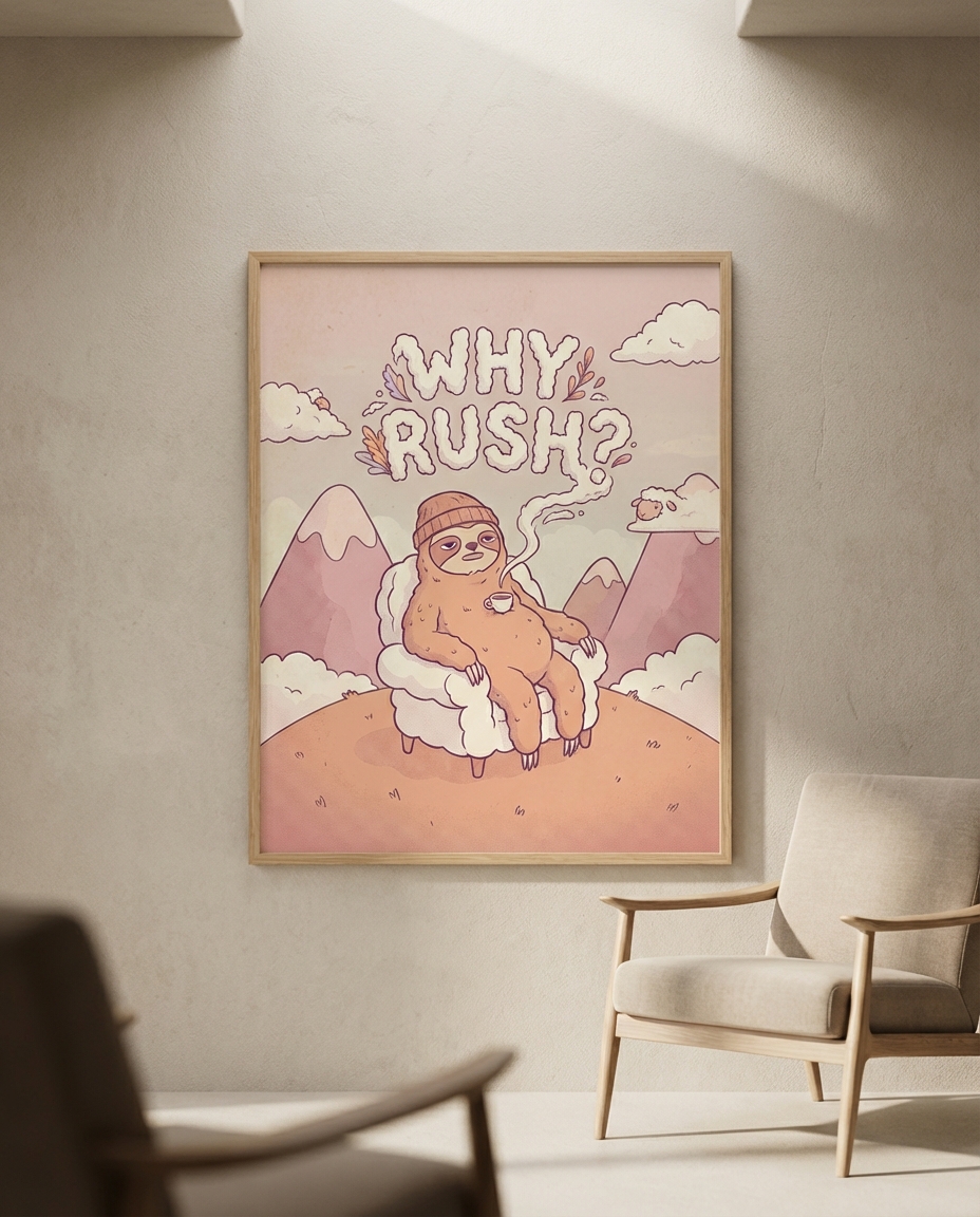 Rustik Tarzda Sakinliğe Davet Eden Sloth Tablosu