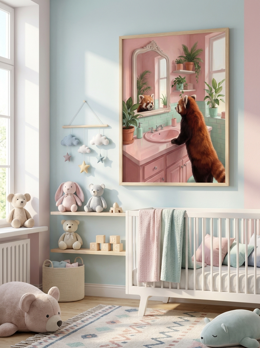 Bu eseri hangi alanda kullanacağınız kadar nasıl sergilediğiniz de önemlidir. Sevimli Kırmızı Panda Sanatı için Banyonuz için asma yüksekliği göz hizasının biraz altında tutulduğunda tasarımın etkisi maksimuma ulaşır. Altın ya da pirinç çerçeve eklektik bir görünüm verirken siyah çerçeve modern sadeliği vurgular. Sevimli Kırmızı Panda Sanatı için Banyonuz açık renkli fayans ve nötr duvar boyasıyla mükemmel kontrast oluşturur. Büyük banyolarda ikili ya da üçlü galeri duvarı oluşturabilirsiniz.