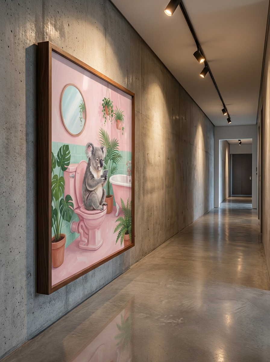 Tasarımı en iyi değerlendirebileceğiniz mekânlar için birkaç öneri sunalım. Sevimli Koala Baskısı - Bir Dokunuş için için tuvalet karşısındaki duvar en ideal konumdur; o alanda geçirilen birkaç dakika eseri en uzun süre deneyimleme imkanı sunar. Küvet üstü boşluklar ise banyonun en dramatik görüntü alanıdır ve Sevimli Koala Baskısı - Bir Dokunuş için doğru boyutta burada müthiş bir etki yaratır. Çerçeve tercihinizde banyonun mevcut metal aksesuarlarıyla uyum sağlamayı hedefleyin.