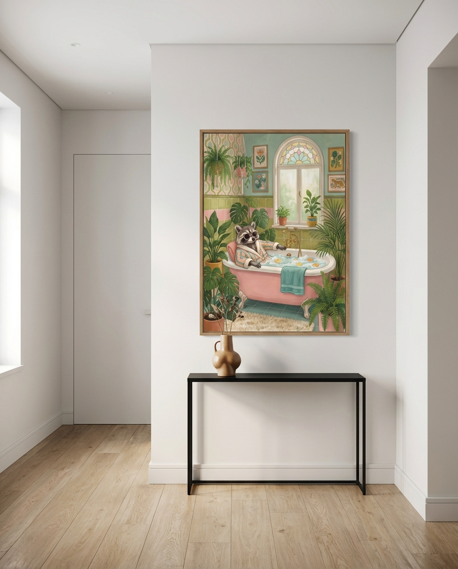 Tasarımı en iyi değerlendirebileceğiniz mekânlar için birkaç öneri sunalım. Sevimli Rakun Küvet Tablo Modelleri için tuvalet karşısındaki duvar en ideal konumdur; o alanda geçirilen birkaç dakika eseri en uzun süre deneyimleme imkanı sunar. Küvet üstü boşluklar ise banyonun en dramatik görüntü alanıdır ve Sevimli Rakun Küvet Tablo Modelleri doğru boyutta burada müthiş bir etki yaratır. Çerçeve tercihinizde banyonun mevcut metal aksesuarlarıyla uyum sağlamayı hedefleyin.
