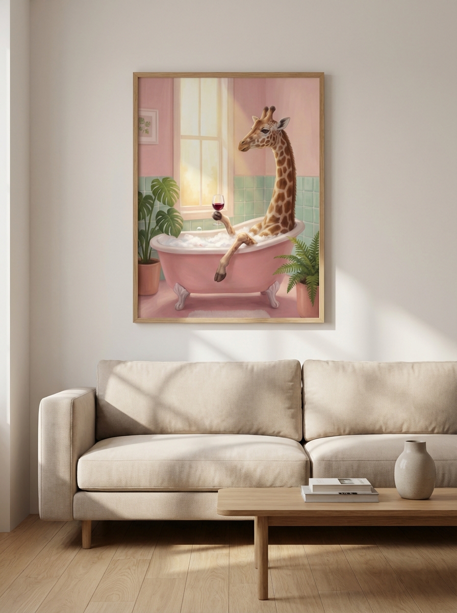 Bu tasarımın evinizde en parlak biçimde parlaması için pratik ipuçları paylaşalım. Sevimli Zürafa Küvet Sanatı için öncelikle banyonuzun hakim renk tonunu belirleyin. Küçük banyolarda Sevimli Zürafa Küvet Sanatı için A3 boyut idealdir; hem dekoratif etki yaratır hem de mekânı bunaltmaz. Büyük banyolarda ise A1 ya da daha büyük bir kanvas seçmekten çekinmeyin; büyük yüzeyler bu tür tasarımların güçlü tarafını ön plana çıkarır.