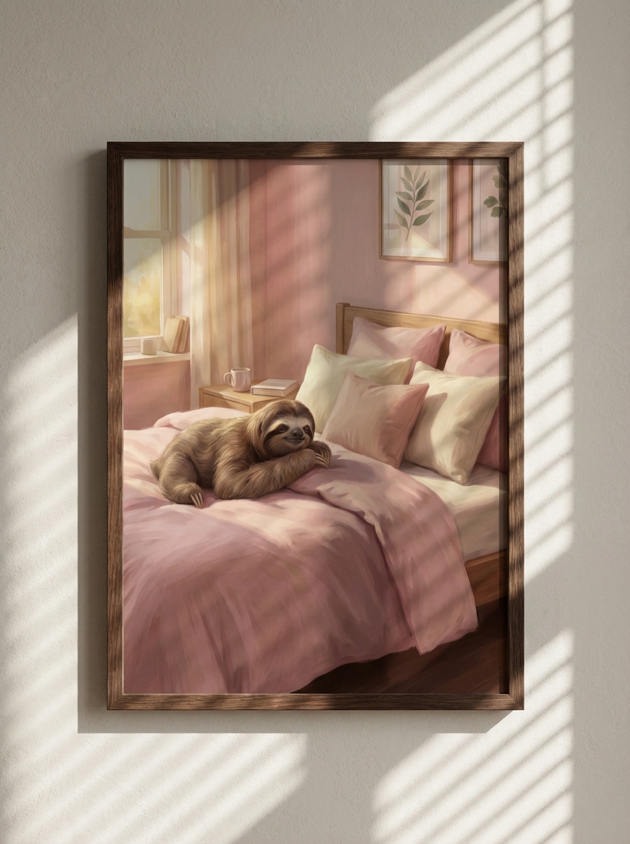 Sloth on Bed Duvar Sanatı - Create a Cozy Atmosphere