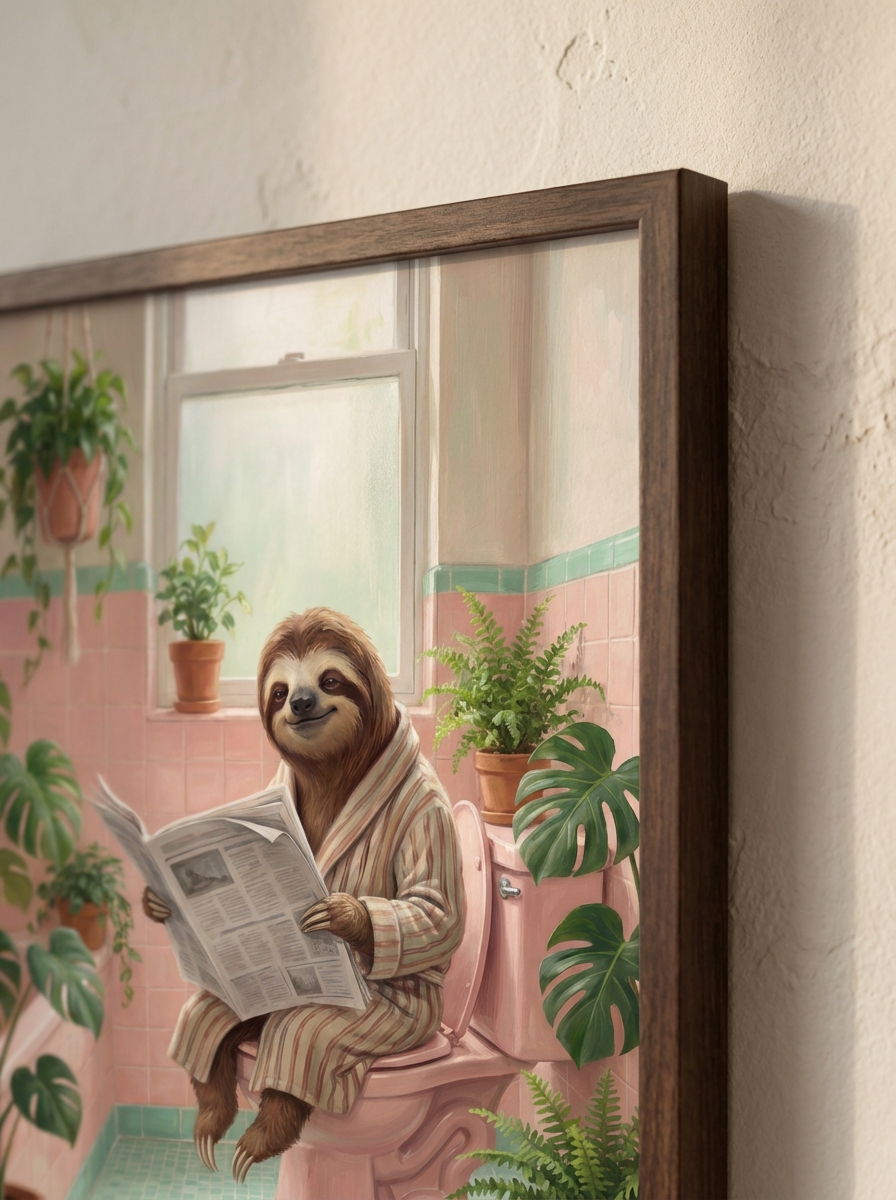 Tasarımı en iyi değerlendirebileceğiniz mekânlar için birkaç öneri sunalım. Tembel Ayı Ve Pembe Tuvalet Duvar Sanatı için tuvalet karşısındaki duvar en ideal konumdur; o alanda geçirilen birkaç dakika eseri en uzun süre deneyimleme imkanı sunar. Küvet üstü boşluklar ise banyonun en dramatik görüntü alanıdır ve Tembel Ayı Ve Pembe Tuvalet Duvar Sanatı doğru boyutta burada müthiş bir etki yaratır. Çerçeve tercihinizde banyonun mevcut metal aksesuarlarıyla uyum sağlamayı hedefleyin.
