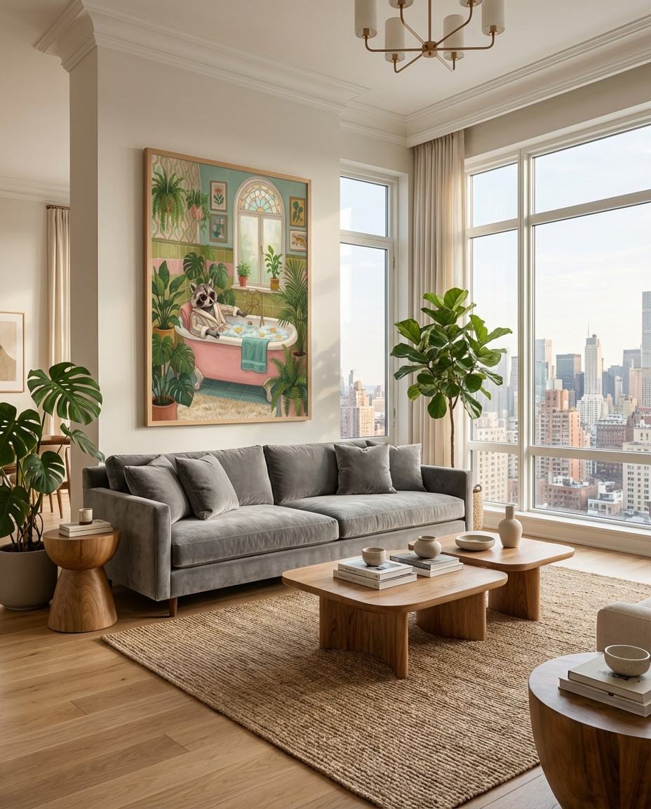 Tasarımı en iyi değerlendirebileceğiniz mekânlar için birkaç öneri sunalım. Unutulmaz Rakun Banyosu Duvar Dekoru için tuvalet karşısındaki duvar en ideal konumdur; o alanda geçirilen birkaç dakika eseri en uzun süre deneyimleme imkanı sunar. Küvet üstü boşluklar ise banyonun en dramatik görüntü alanıdır ve Unutulmaz Rakun Banyosu Duvar Dekoru doğru boyutta burada müthiş bir etki yaratır. Çerçeve tercihinizde banyonun mevcut metal aksesuarlarıyla uyum sağlamayı hedefleyin.