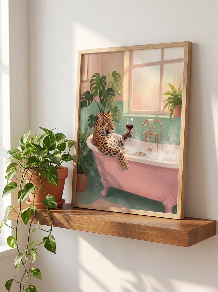 Sanat eserini doğru yerleştirmek onu doğru seçmek kadar önemlidir. Vintage Dokunuş: Leopar Temalı Sanat Eseri doğal ışık alan banyolarda özellikle çarpıcı görünür. Pencereden düşen ışık renklerin canlılığını artırır ve Vintage Dokunuş: Leopar Temalı Sanat Eseri eserine üç boyutlu bir derinlik hissi katar. Banyonuzda doğal ışık yoksa renk sıcaklığı 3000-4000K arasında bir LED aydınlatma tercih edin; bu baskı renklerine en doğal görünümü sunar.