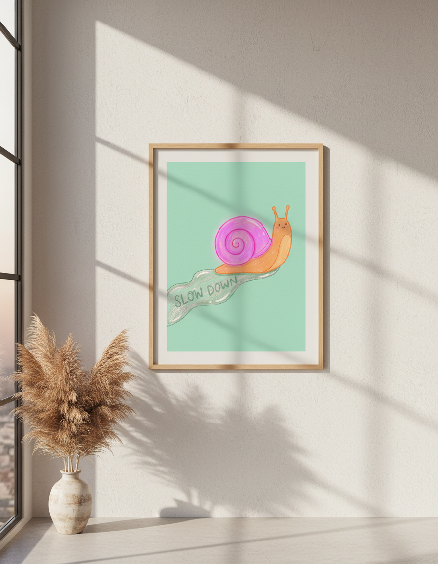 Banyo dekorasyonunda en sık yapılan hata tarzın tutarsızlığıdır. Yavaşlayan Sümüklüböcek Seramikleri bu sorunu kökten çözüyor; minimalist, Skandinav ve modern Bohem tarzlarla mükemmel uyum sağlıyor. Siyah metal çerçeve seçerseniz Yavaşlayan Sümüklüböcek Seramikleri mekana çağdaş bir karakter kazandırır; doğal ahşap çerçeve ise sıcak ve organik bir hava yaratır. Küçük banyolarda tek büyük eser çok daha güçlü bir etki bırakırken büyük banyolarda birkaç küçük eseri simetrik olarak dizmek galeri görünümü sunar.