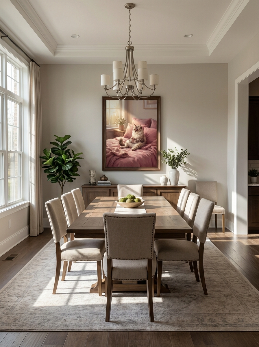 Sanat eserini doğru yerleştirmek onu doğru seçmek kadar önemlidir. Yumuşak Kediler ile Düşlenen Duvar Sanatı doğal ışık alan banyolarda özellikle çarpıcı görünür. Pencereden düşen ışık renklerin canlılığını artırır ve Yumuşak Kediler ile Düşlenen Duvar Sanatı eserine üç boyutlu bir derinlik hissi katar. Banyonuzda doğal ışık yoksa renk sıcaklığı 3000-4000K arasında bir LED aydınlatma tercih edin; bu baskı renklerine en doğal görünümü sunar.